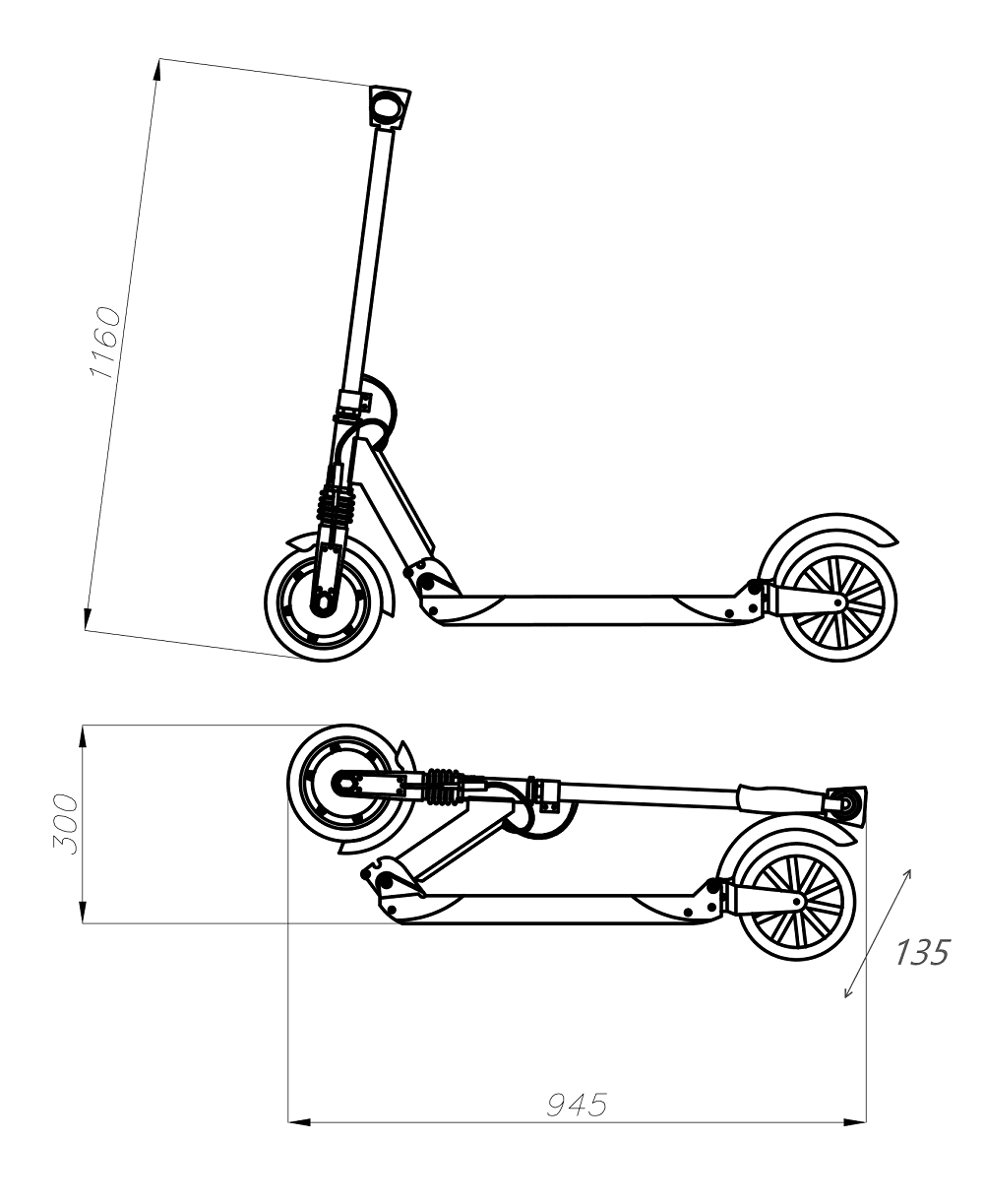 Полностью складной электросамокат, регулируется высота руля. А так же на e-twow s2 складываются рукоятки руля, это очень удобно при переноски самоката в общественных местах. Нескладные ручки на самом деле могут мешать в общественном транспорте или в очередях. Самый легкий электросамокат с колесами 8* (20см)