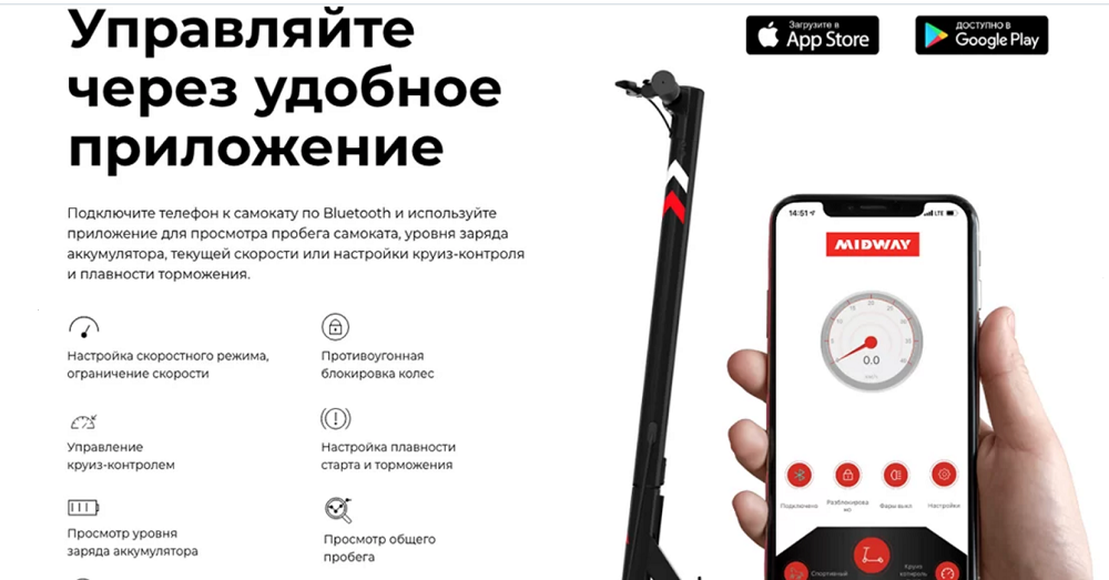 Особенности электросамоката MIDWAY i-Max PRO:
